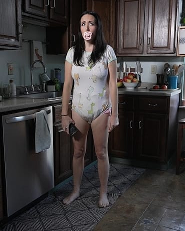 Tina is in an ABDL arrangement with Nate's poly wife. When the wife goes off shopping, Nate is supposed to take care of Tina, who is bored and wants to be entertained. But Nate wants nothing to do with her or their stupid diaper fetish stuff. So, Tina cooks up a plan to humiliate Nate the best way a babe knows how.