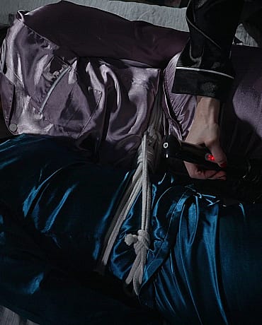 Long time lovers Vonka and Syenite have a very special relationship with their friend Tina. They love to be dominated and bound as a couple and Tina loves to do it for them! They set up play dates and make a whole night filled with rope, tape, hitachis and fat dildos. Tina loves to take her time and watch them struggle. This evening they explored the smooth feeling of satin pajamas under the bondage and it was so erotic. The silk fabric made everything so much more sensual!