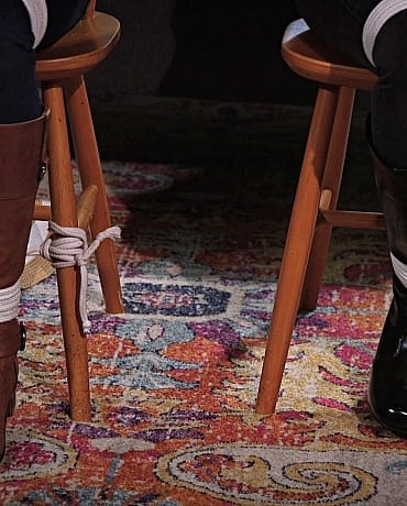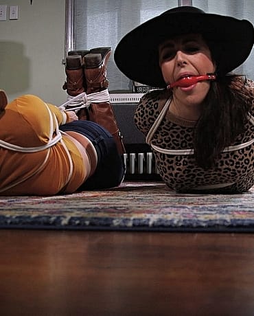 Alexis and Dixie are both spoiled, ditzy socialites. They are getting ready to go to the apple orchard when they are suddenly surprised by an intruder. The man ties them in in two different ways and the girls struggle in the ropes, drooling through their ball gags, awaiting their freedom