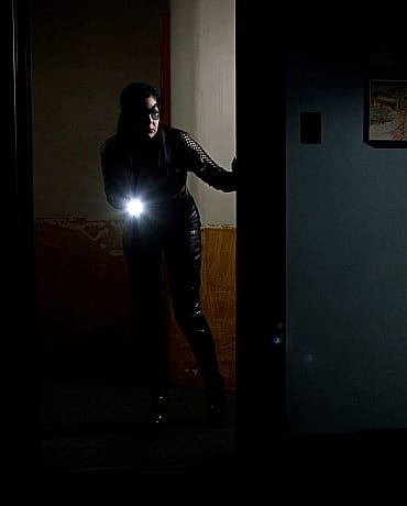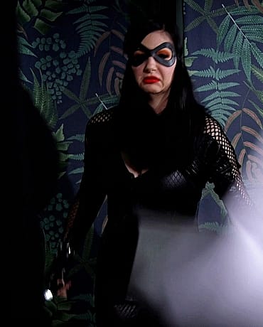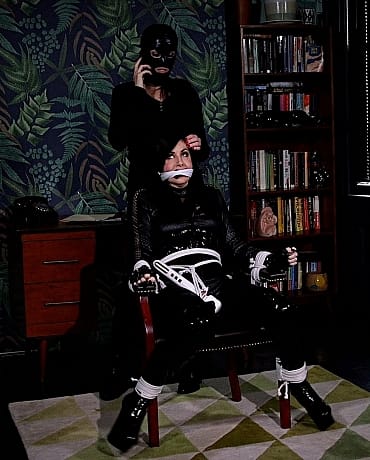 News reporter Tina has run across an unidentified woman during her search for the sex slavery ring. Even though Mistress Scarlet is in prison, the rest of her organization is still out there. She’s noticed this woman has shown up in security cameras near a couple of the nappers’ old hideouts so she’s followed her here and is staking her out. The burglar, Nyxon, is snooping around with a flashlight and comes across some documents. She is suddenly disturbed by a woman in a mask, one of the nappers! Nyxon throws the papers at the napper, trying to run, but the napper whips a bola at her legs and gets the cat burglar to the ground and handcuffs her. She gets her gagged and ties her to a chair with a hitachi strapped to her. The masked woman enters the room again and tells Nyxon that her ride will be there shortly, but in the meantime she could probably use some warm-up training. She turns the vibrator on and makes Nyxon cum. Having better things to do than wait around, she blindfolds Nyxon and leaves the room while Nyxon squirms against the vibrator. Tina is waiting outside the building and notices that the burglar is taking a long time inside and decides to go investigate. She finds Nyxon exactly how the napper left her. She turns off the vibrator, removes her blindfold and gag and asks Nyxon why she broke into the building. Nyxon is hesitant at first but recognizes Tina as the news reporter and comes up with a lie, seeing an opportunity arise for her escape. Tina finally gets her untied and has decided they’re going to go to the police but Nyxon grabs the telephone sitting on the table and hits the news reporter over the head. Tina is now tied up to the chair with a vibrator and Nyxon has switched their clothing. Nyxon apologizes and tells her that she needs a fall girl and that everything she told her was bullshit. Nyxon taunts, blindfolds her then leaves. Tina struggles hard in the chair realizing she’s been left for the slavers to find but becomes aroused by the vibrator and ropes. Suddenly the napper is there groping her and telling her it’s good practice for her new life as a slave. They’re interrupted when her “ride” shows up. A masked man comes into the room and they are talking and untying Tina. She recognizes his voice as the same guy that grabbed her and Rapture and only has one chance to make an escape. The woman pulls Tina to stand up, as the man starts to tie her knees but before he can get the ropes around her legs, Tina knees him in the face and karate chops the woman, sending them both to the ground. Tina pulls her blindfold off and the man recognizes that it’s Justice! The female napper whips her bola at Tina and she stumbles to the ground near where her camera bag is. She reaches inside and throws a smoke bomb to the floor, making it possible to escape. Tina gets to safety and realizes it’s time for her to serve Justice to the city...