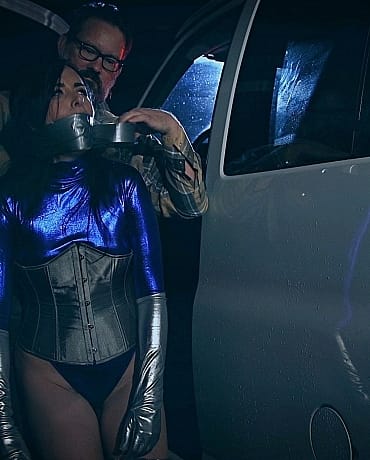 Episode 3 Justice is driving with Rapture and Scarlett still tied up with vibrators in the back of the van. Justice isn’t sure where to take the two women. Since Siren and Rapture both used to be cops, she can’t trust the police. Just then, Justice notices a car swerving in her rearview mirror, like someone is trying to chase her. She grips the steering wheel and a look of concern comes over her face. Suddenly Justice sees headlights coming from the side but before she can react, the car slams into the side of the van. A man walks up to the wrecked van and opens the door lifting Justice out of the front seat. He then stuffs her mouth with panties and wraps them in with several rounds of duct tape. He cuffs her hands behind her back and carries her to the back of the van. Justice, Rapture and Scarlett are strictly tied to chairs now. They’re cleave gagged with mouth packing and they all have vibrators tied to their pussies. As they struggle, someone plugs in their vibrators one at a time which causes each woman to panic. Justices notes in her head that she has no idea where they are or who has captured them. She tries to undo her ropes but thinks whoever tied them up did too good a job and she’s already starting to be distracted by the vibrator. She describes trying to fight the pleasure because she has to get herself and Rapture to safety. As she tries to finish her thought, she trails off and succumbs to the vibrator. Same with Rapture and Scarlett and they all continue to have orgasm after bound orgasm. Will Justice prevail???