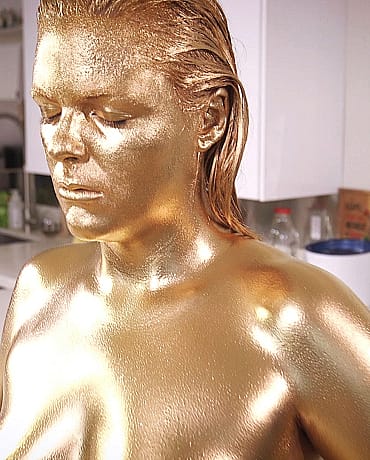 As any good actress would, Kendra decided to reference some gold statue videos before the shoot she has in the morning. She's surprised at how much the concept turns her on and starts to masturbate to the thought of being a frozen metal piece of art! As her tired eyes lower Kendra's fantasy comes to life! She's a glittering gold statue and her body is made for pleasure! As she touches her hard smooth body she realizes with shock and terror that she's starting to freeze in place! With an orgasmic gasp and her heart racing Kendra wakes up to discover her hands have turned to gold!