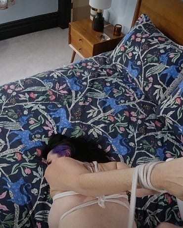 Tina gets herself lightly tied up and masturbates with her vibe while she waits for you, her lover, to come tie her up more and satisfy yourself with her willingly seductive holes.
