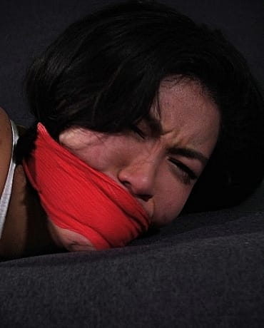Kim is a college journalism major who writes for the school paper. She’s heard rumors about a professor who gives female students passing grades in exchange for sex and has arranged to have a meeting with him. Once she gets him to confess his scheme, she pulls out a recorder and threatens to reveal him. The Professor will have none of that and after a short scuffle, Kim finds herself hogtied and gagged with her own panties.