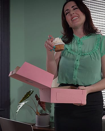 Executive assistant Tina has gotten a big promotion and is ready to find her replacement but it seems her sleazy boss has already hired someone. When she finds out the new girl is a cum guzzling whore who is there for her blow job skills not her administrative abilities, Tina decides to take her down a peg with her own giant cock.