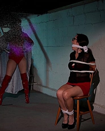 Supervillain Electrolux tricks superheroine Power Woman and traps her. Once she has her tied up, Electrolux explains her diabolical plan to zap all of Power Woman’s powers out of her so she can do all her crimes uninterrupted. But first they're going to fuck. When Electrolux is finally ready to execute her diabolical plan, an evil man foils her plans and both superhero and supervillain find themselves in a predicament.