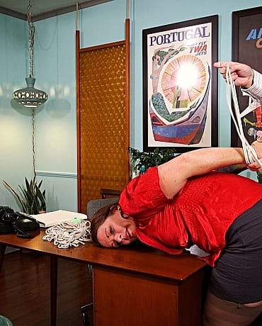 I highly appreciate Fayth, she's a beautiful woman. In this scene, she's perfect, very elegant and sexy, I love the outfit she wears: blouse, skirt, stockings, high heels... beautiful hairstyle and makeup too. She's very attractive. Of course, She's a very good actress and she plays perfectly this character of clumsy secretary. Nate is also very good, and he knows how to treat her... good and well done scene. Fayth is perfect when she interprets a secretary but I hope for a return of Spyder Fayth, Golden Guardian or Batgyrl, because she's also excellent in roles of humilated, unmasked and defeated superheroines.