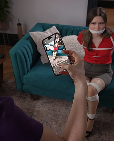 Zeo is a nosy little snoop. When Tina heard someone come in the house, she came downstairs to find her snooping around her things! She walks up behind the nosey bitch and grabs her from behind. She'll teach her a hard lesson about staying out of peoples personal things!